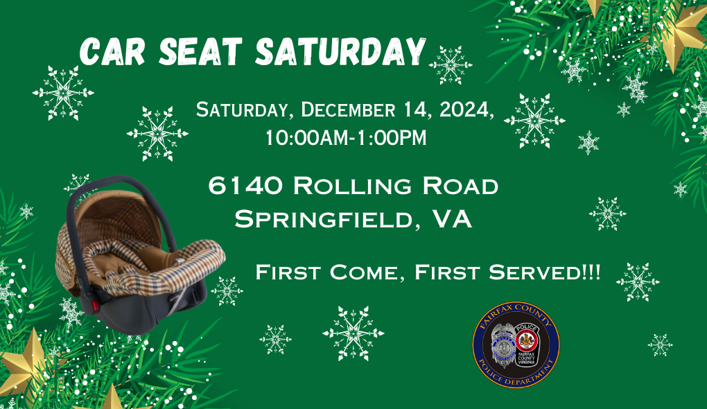 Get your child’s car seat inspected on Saturday, December 14, from 10:00 a.m. - 1:00 p.m. at the West Springfield Police District Station (6140 Rolling Road, Springfield). No appointment is needed.