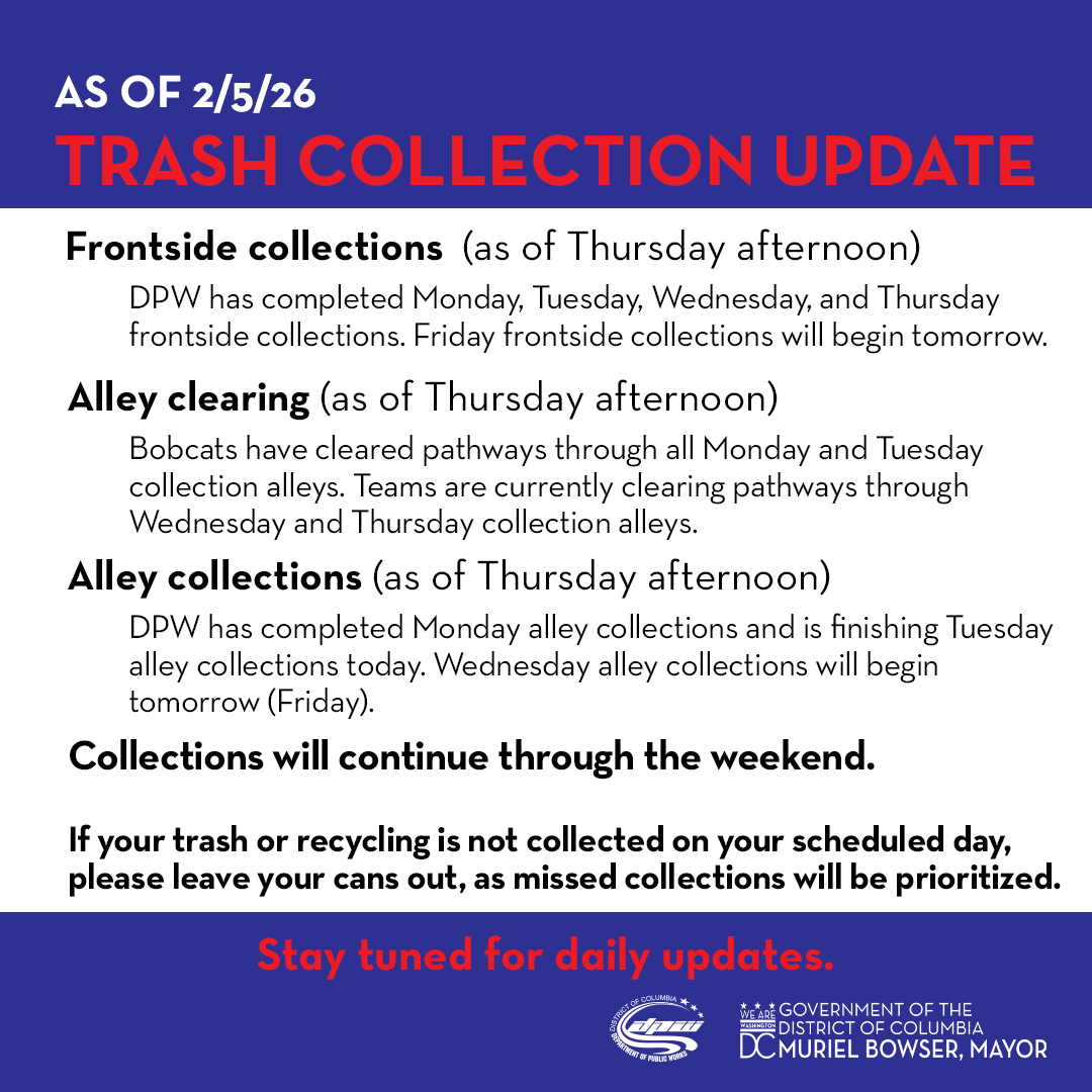While the scale of this winter storm has tested every District agency, we remain focused on the work left to do. My team and I are in constant communication with agency leadership to ensure that the initial plowing of major arteries transitions quickly into the intensive work required for our residential side streets and transit access points. We are not just looking at the immediate cleanup, but also documenting the systemic gaps in this response to ensure we are better prepared for the next extreme weather event.