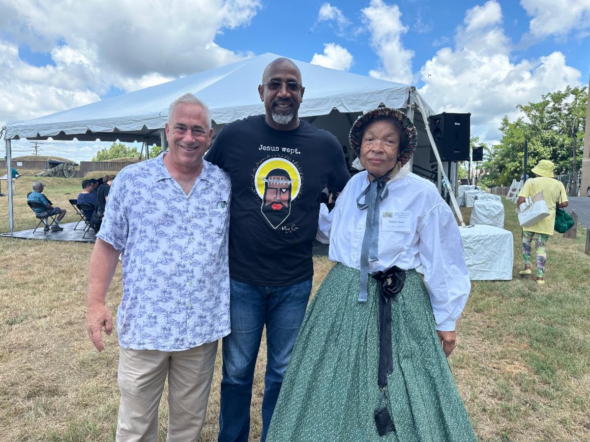 At Fort Stevens Day with Pastor Joe Daniels of Emory United Methodist Church and Pat Tyson, president of the Military Road School Preservation Trust. | |