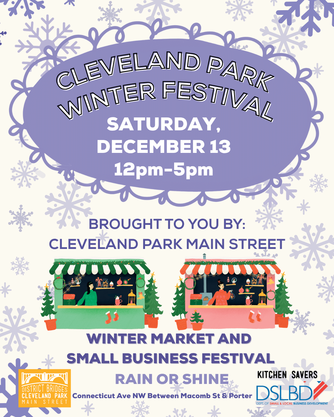 From November 23 to January 3, residents can take part in the DC Holiday Hunt, a citywide scavenger hunt designed to highlight small businesses and encourage people to shop local. As you complete missions across the District, you will discover new stores, revisit old favorites, and help keep holiday spending in our neighborhoods. Ward 3 participants include Cleveland Park Main Street, Chevy Chase Main Street, and the Friendship Heights Alliance.