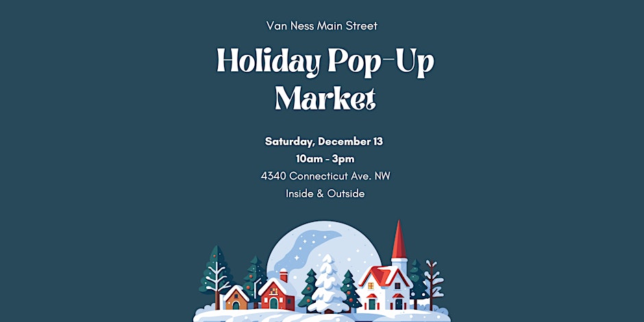 Van Ness Main Street's Holiday Pop-Up Market on Saturday, December 13, from 10 a.m. to 3 p.m. There will be more than 20 local artisans and makers along Connecticut Avenue. See the event page for more details.