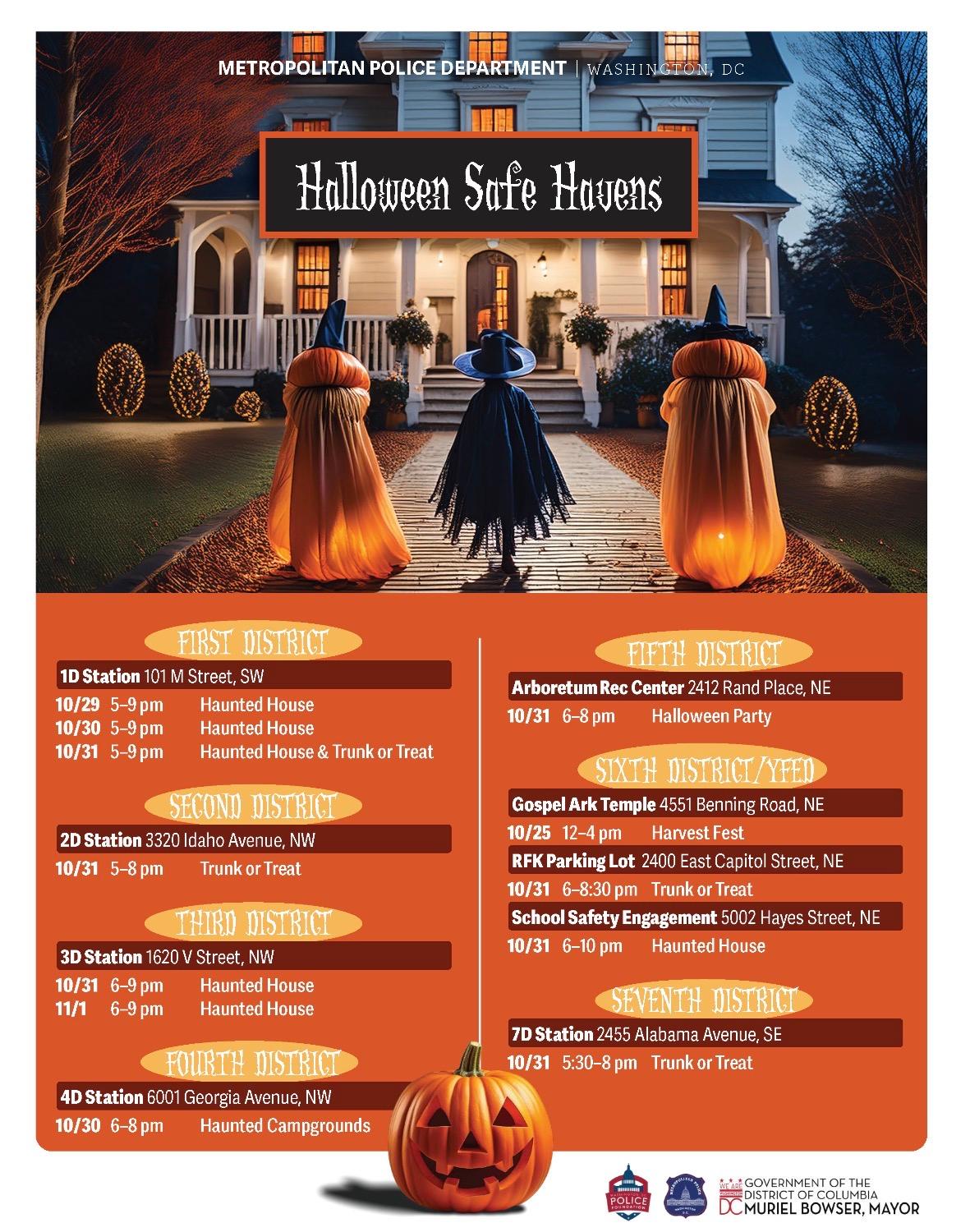 Also on Saturday, October 25, from 3:00 to 5:00 p.m. at CVS at 3700 Newark St NW, MPD is hosting a fun and informative afternoon featuring music, snacks, safety literature, Halloween trivia, fingerprint/ID kits, and treat bags for kids.