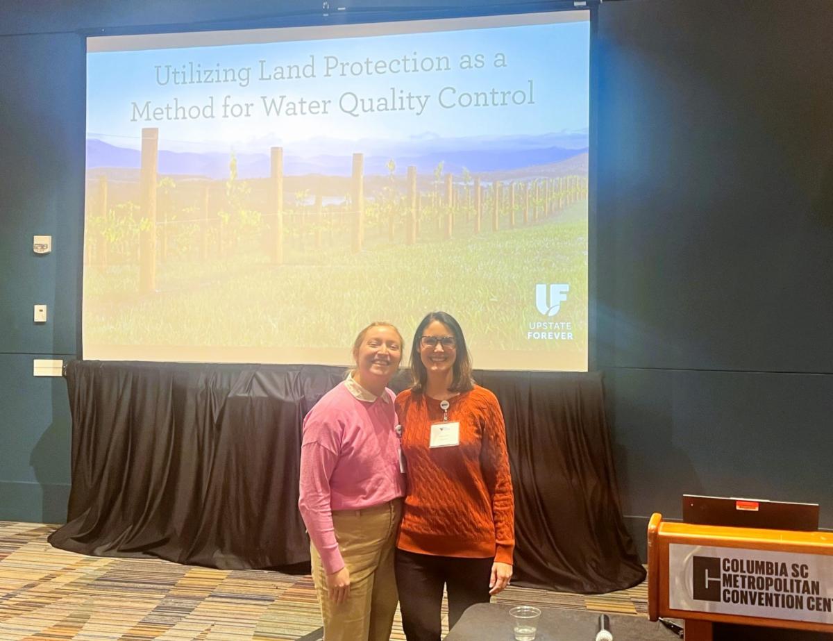 As many of you know, Upstate Forever (UF) works to protect critical lands and waters in Upstate, SC. But not everyone knows how our Land Conservation and Clean Water programs work together to accomplish this important work. To help explain this process our team members — Katie Hottel and Rebecca Wade — presented at the South Carolina Water Resources Conference (SCWRC) in Columbia, SC, back in October 2024.