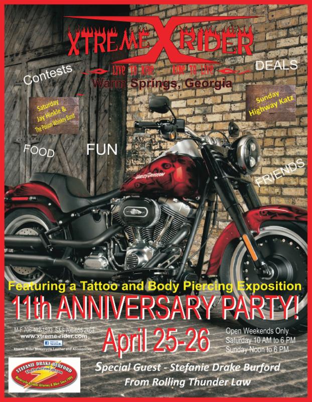 Apr. 11-12 Warm Springs, GA. We Ride Meet & Greet. Fundraising ride Saturday for Thubert - KSU 11am. Fellowship, food, vendors & music after ride. Location: Xtreme Rider. Call 706-402-1593 M-F 706-655-2463 S-S.