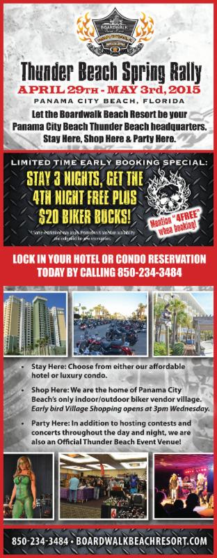 Apr. 14 Pensacola, FL. Harley-Davidson of Pensacola Bike Night. From 6-9pm. 6385 Pensacola Blvd. Call 850-494-1224.