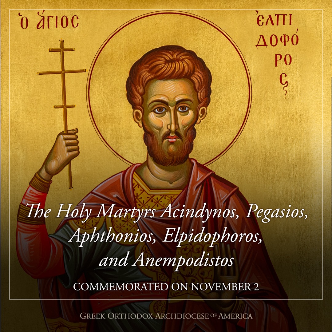Memory of the Holy Martyrs Acindynos, Pegasios, Aphthonios, Elpidophoros, and Anempodistos
