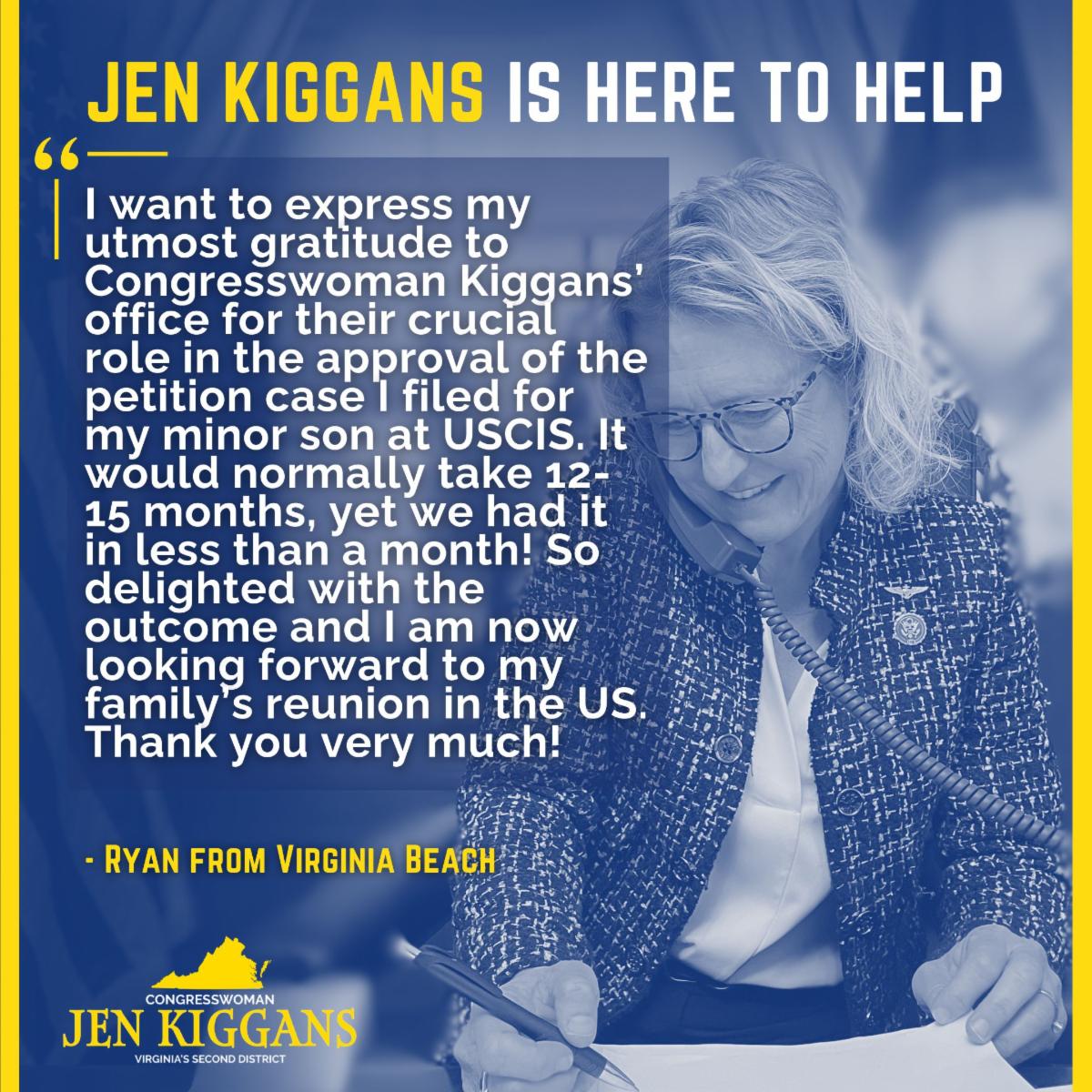 I know how difficult it can be to navigate the federal government. Recently, my office assisted Ryan from Virginia Beach in resolving an issue related to the United States Citizenship and Immigration Services (USCIS). After he reached out to my office, we were able to lend a helping hand through the casework process and provide him with the help he needed. Thanks for reaching out, Ryan...!