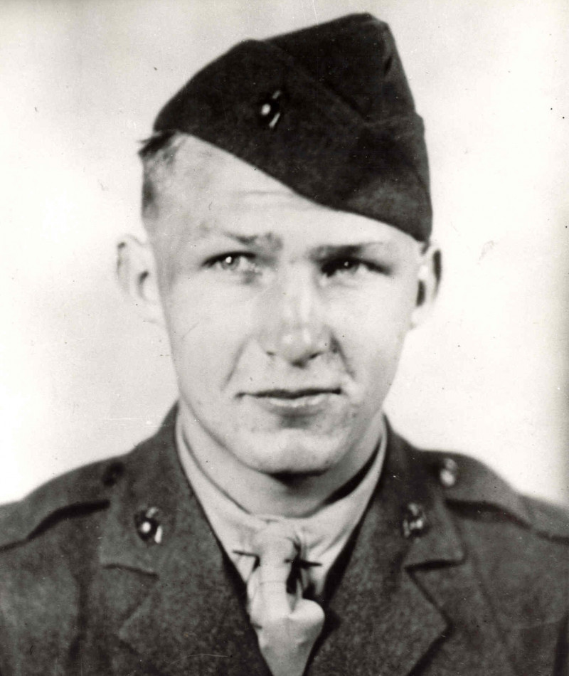 | Despite intense, persistent enemy fire, he ran out to aid two men whom he believed to be wounded marines, but was himself mortally wounded by a Japanese sniper while carrying out his hazardous mission. Pfc. Agerholm's brillant initiative, great personal valor, and self-sacrificing efforts in the face of almost certain death reflect the highest credit upon himself and the U.S. Naval Service. He gallantly gave his life for his country. |