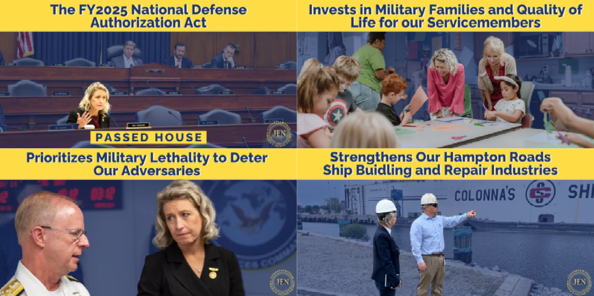 The NDAA also authorizes $806.8 million for 14 military construction projects in Virginia, including $54.8 million for military construction projects in Hampton Roads...! It also provides an additional $1 billion to maintain the supply chain for a 2nd Virginia Class submarine, which is critical to restoring American deterrence.