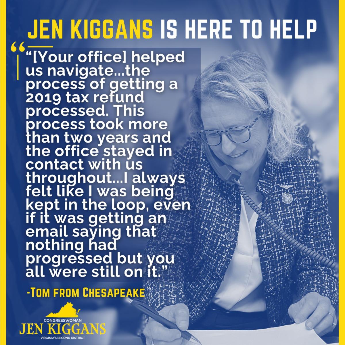 I know how difficult it can be to navigate the federal government. My office assisted Tom from Chesapeake in resolving an issue with the Internal Revenue Service (IRS). After he reached out to my office, we were able to lend a helping hand through the casework process. Thanks for reaching out, Tom...!