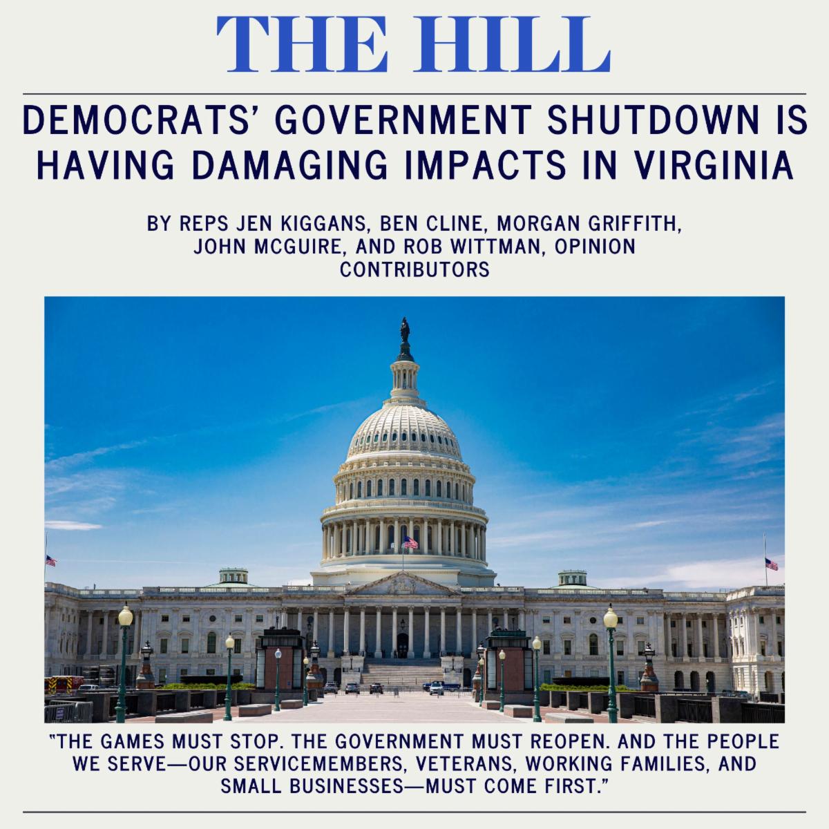 This shutdown is impacting working families in Virginia, veterans, members of the military, and federal employees. I didn’t run for Congress to play these games. I came here to work and to get results for Virginians—right now Senate Democrats are standing in the way, including our own Virginian senators.