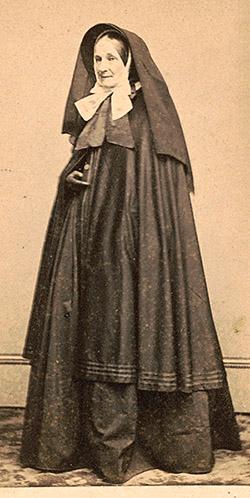 Adeline Blanchard Tyler (1805-1875) was the first Episcopal deaconess. Along with Caroline (Carrie) Elizabeth Guild (1827-1880), Eveline Black (1825-1875), and Catherine Minard (1837-1917), she was admitted to the office of deaconess on the 4th of November 1856. Accepting the threefold charge to be “servants of the Lord Jesus; servants to the sick and poor and needy, of every class, for Jesus’ sake; and servants to one another,” they provided nursing care, religious and practical education, material support, and advocacy at the newly established St. Andrew’s Infirmary in Baltimore. They cared for men, women, and children, Black and white, from near and far, and would become known as the United Deaconesses of Maryland. Previously, Adeline had been a member of Boston’s Trinity Church, where she was among the founders of Trinity Hall, a Sunday School for poor children; the Episcopal City Mission; and St. Stephen’s Chapel. After joining the Church of the Advent in 1846 (where she would later sponsor Carrie Guild for baptism), Adeline continued in her works of Christian charity, becoming Matron of the Parish School, which the rector described as “a place of instruction for children of the Parish especially those who are poor and uncared for. We have about 50 children…10 are the children of colored Parishioners.” In 1856, the Rev. Horace Stringfellow, rector of St. Andrew’s Church in Baltimore, invited Adeline to head his new infirmary, the fulfillment of his vision to emulate the nursing Sisterhoods and Deaconess hospitals he had seen in England and France. Adeline and Carrie arrived in Baltimore from Boston that September. They joined Eveline Black and Catherine Minard, who had been working with Stringfellow since 1855 at St. Andrew’s Church, but did not become deaconesses until Bishop Whittingham formally assumed “Pastoral Supervision and Visitorial care of your Sisterhood and of the Infirmary and Schools” on November 4, 1856. Soon the four original Deaconesses were joined by two associates, identified as Miss Hickey and Miss Martin. The report of the Infirmary’s first year notes 53 patients admitted, 88 out-door patients, 756 visits made, 93 children in the Charity School, 500 garments and 85 pairs of shoes distributed, 5 patients baptized, 4 confirmed, 8 admitted to their “first reception of the Holy Communion.” During and after the Civil War, Adeline and her companions provided nursing care to the wounded on both sides of the conflict. At the Camden Street Hospital in Baltimore and the military hospital in Chester, Pennsylvania, and, somewhat later at the Naval Hospital at Annapolis, Maryland, often as many as one thousand wounded soldiers were under her care. She died on January 9, 1875.