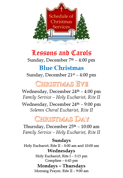 We will hold rehearsals after the 10:00 am service on December 7 and 21.