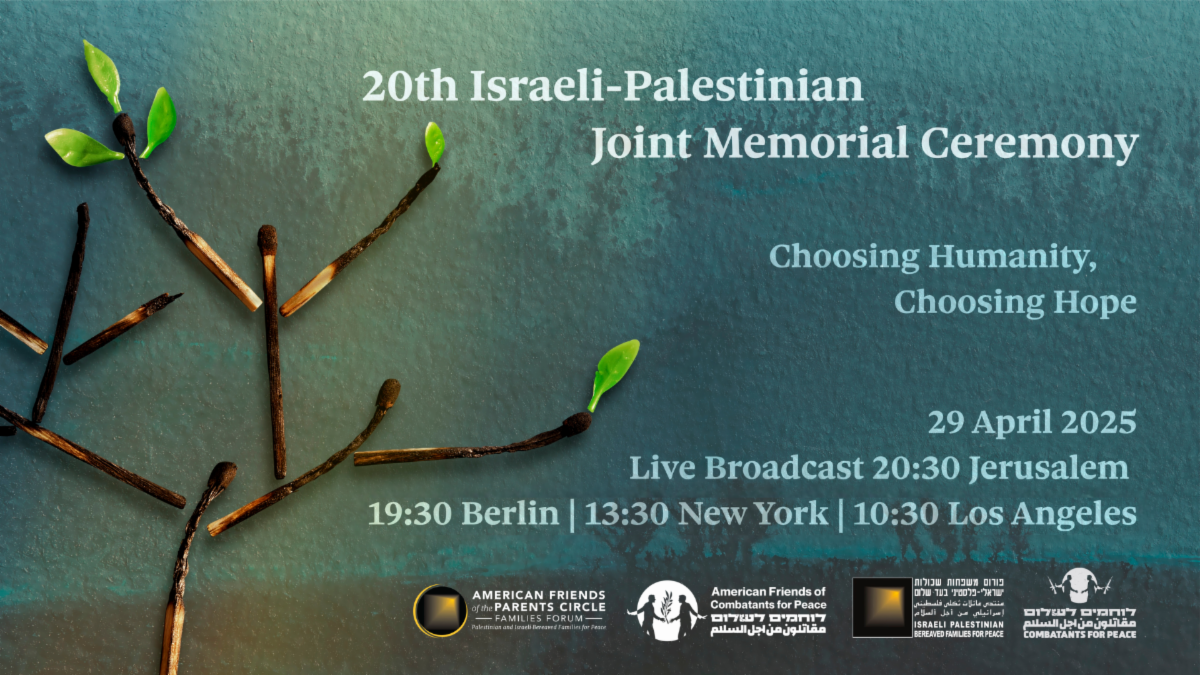 NHCUCC Peace with Justice Advocates Mission Group is proud to sponsor the 20th Israeli-Palestinian Memorial Ceremony. Join us on April 29, 2025 at 1:30PM EST as Combatants for Peace and the Parents Circle co-host the 20th annual Joint Memorial Day Ceremony. This gathering offers a profound alternative to division and despair, proving that even in times of deep suffering, solidarity is not only possible but imperative.