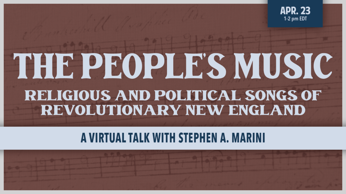 Join the Congregational Library and Archives on Zoom on Wednesday, April 23 from 1–2PM EDT for a fascinating look at Revolutionary New England’s musical culture with Dr. Stephen Marini, Elisabeth Luce Moore Professor of Christian Studies at Wellesley College and singing master of Norumbega Harmony.
