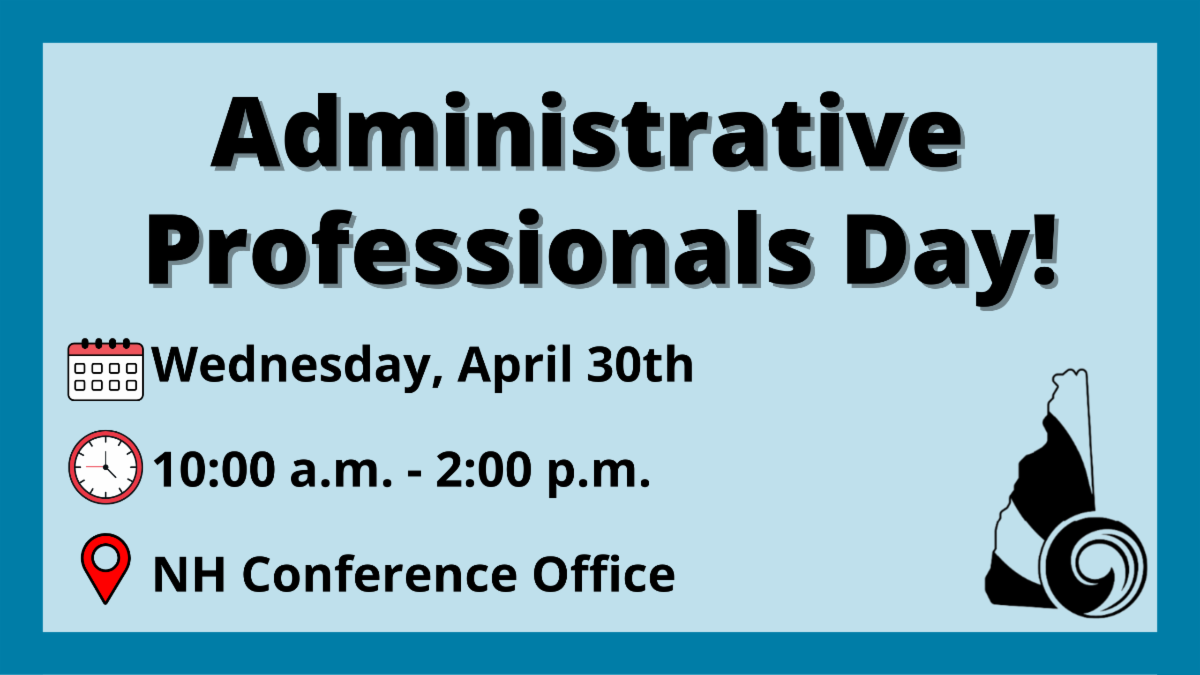 Register Today: Registration Closes on April 25, 2025! Our Local Church Support Ministry Team and the Conference staff will be hosting our annual gathering for Church Administrative Professionals on Wednesday, April 30 at 10:00AM at the Conference Office (140 Sheep Davis Road, Pembroke). Lunch will be provided. Join us to meet your fellow church administrators and learn more about the NH Conference and its offerings. This event is funded by the Local Church Support ministry at no cost to churches. However, we encourage churches to compensate their staff for a full workday if they attend.