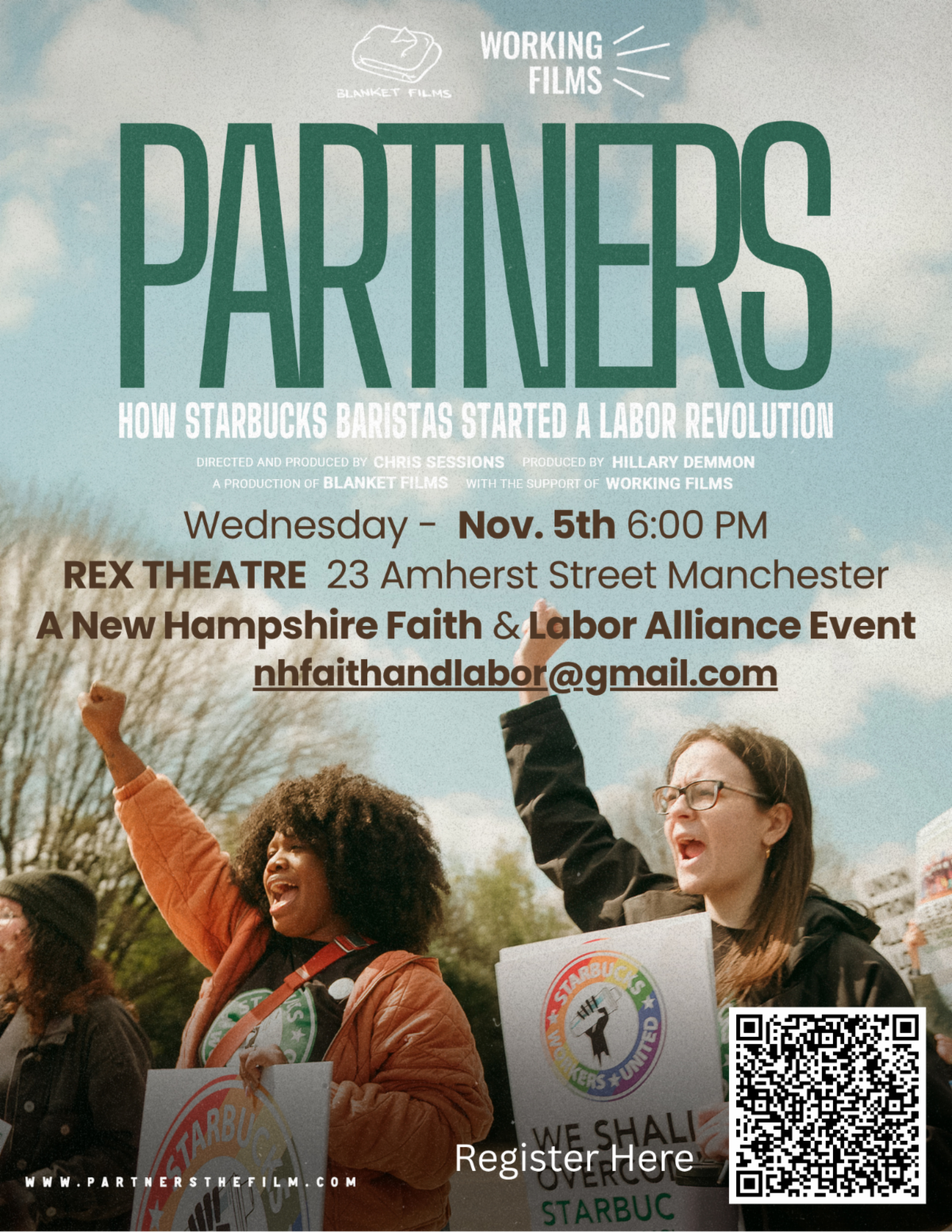 Movie attendance is free, but the Mission Group asks all attendees to register here. We are honored to be working with Starbucks Workers United, the Rex Theatre, the North Carolina-based Working Films, and multiple NH allies in making this film showing possible.