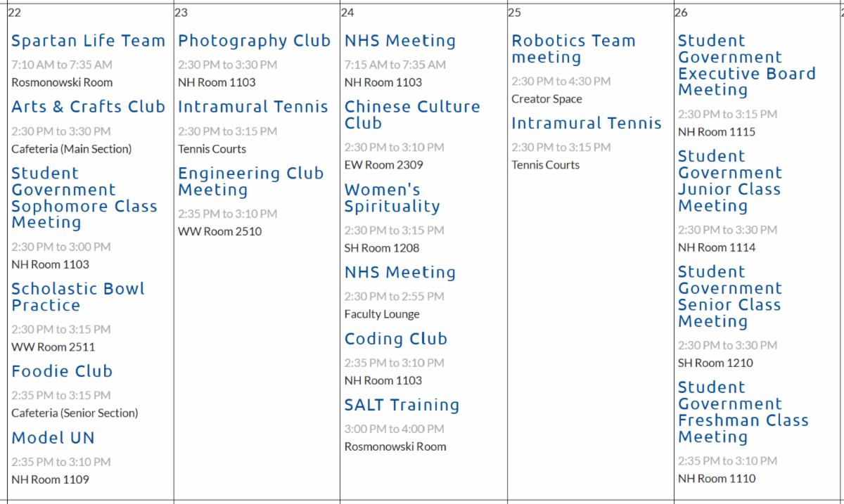 Questions? Email mclub@sfhscollegeprep.org |  |    |   |   |   | Anya T. '26 Completes NASA Internship |    | Congratulations to Anya T. '26, who completed an 8-week STEM internship with NASA this summer. She was part of the 2025 Aviation Concept Design Experience and learned about aerospace opportunities within the Aviation Systems Division at Ames Research Center in California. |  |  |  |    |   | Clubs & Activities Calendar |  |    |   | Reminder: Executive Functioning Workshop |  |    |   | 5:30-7:30 p.m. October 7, at SFHS. This hands-on workshop is open to students grades 6-12 and their parents. Cost is $65 per student/parent team. Sign up here!