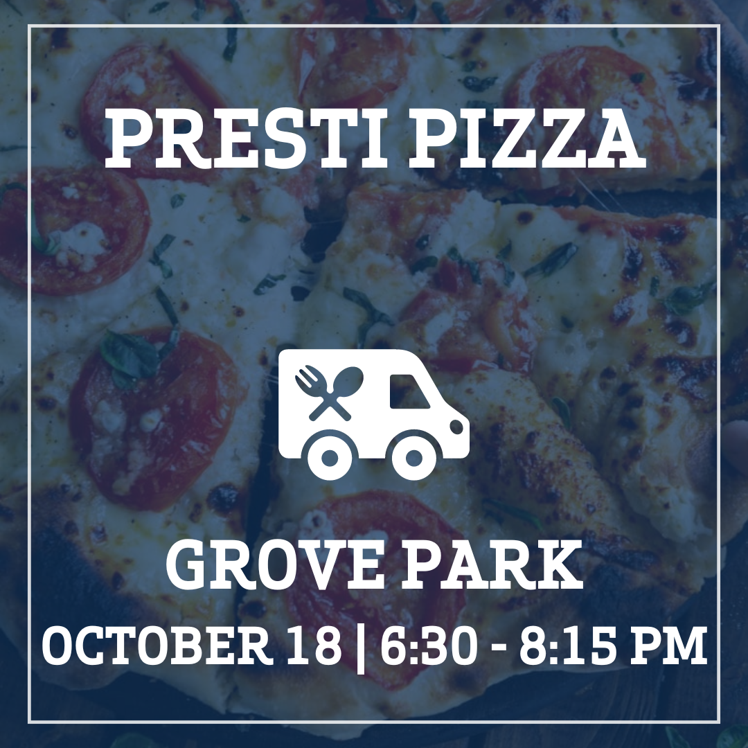 The Presti Pizza food truck will be at Grove Park on October 18 from 6:30 - 8:15 PM serving up specialty pizzas! | |