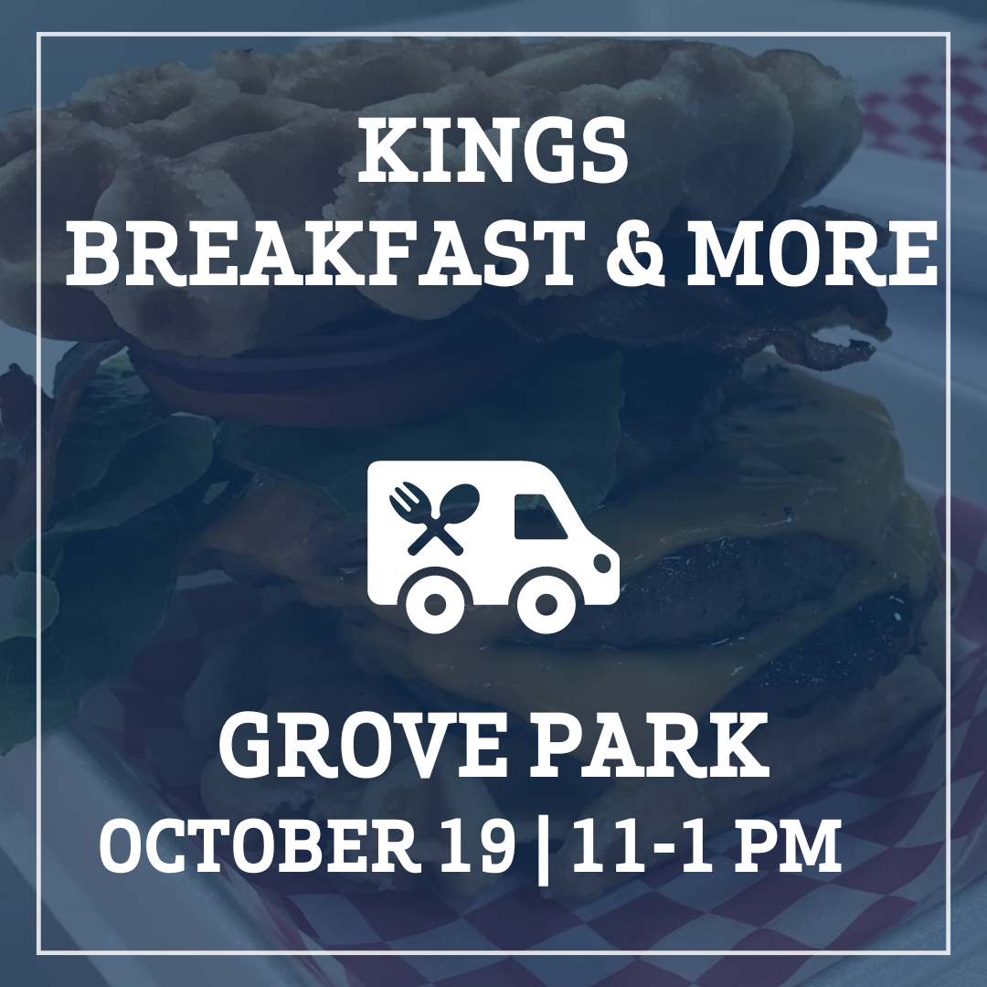 The King's Breakfast & More food truck will be at Grove Park on October 19 from 11 to 1 PM! Enjoy their delicious food and stick around for the Fall Festival! | |