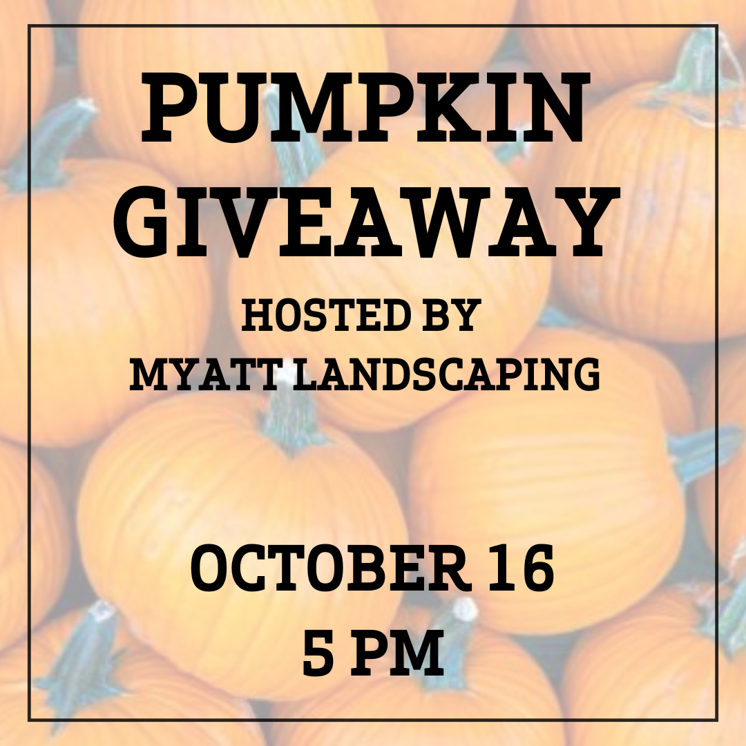 Stop by Grove Park on October 16th at 5 PM to pick up a free pumpkin!