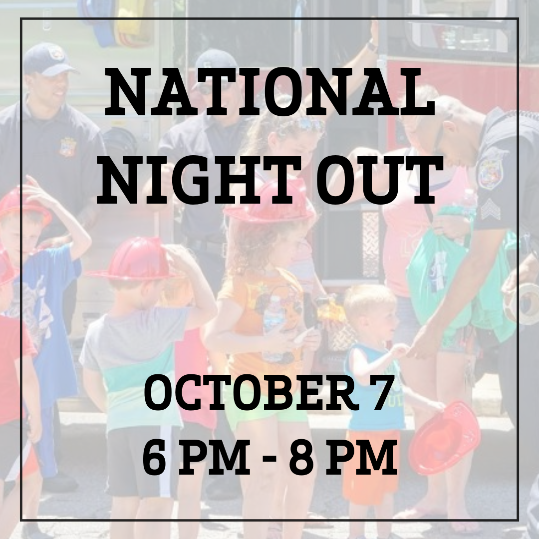 | | Join us for National Night Out on Tuesday, October 7, from 6 to 8 PM at the lawn beside the Tobacco Barn for a fun-filled family event! We’re excited to welcome the Wendell Police Department and Firefighters as our special guests, highlighting the importance of building neighborhood camaraderie with our first responders. Enjoy fun activities, food trucks, live music, and more! | | |