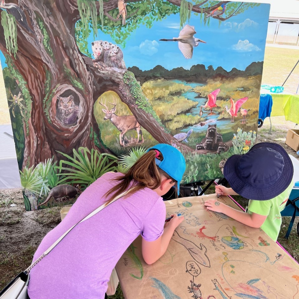 The Coastal Resources Division of the Department of Natural Resources hosted 6,000 visitors at its community-loved CoastFest event at Mary Ross Waterfront Park on Earth Day, April 22. The Land Trust was thrilled to have a booth at the event where staff members and volunteers offered families a chance to learn about SSLT's mission and encouraged children to participate in creating a mural featuring some of their favorite land and water-dwelling animals.