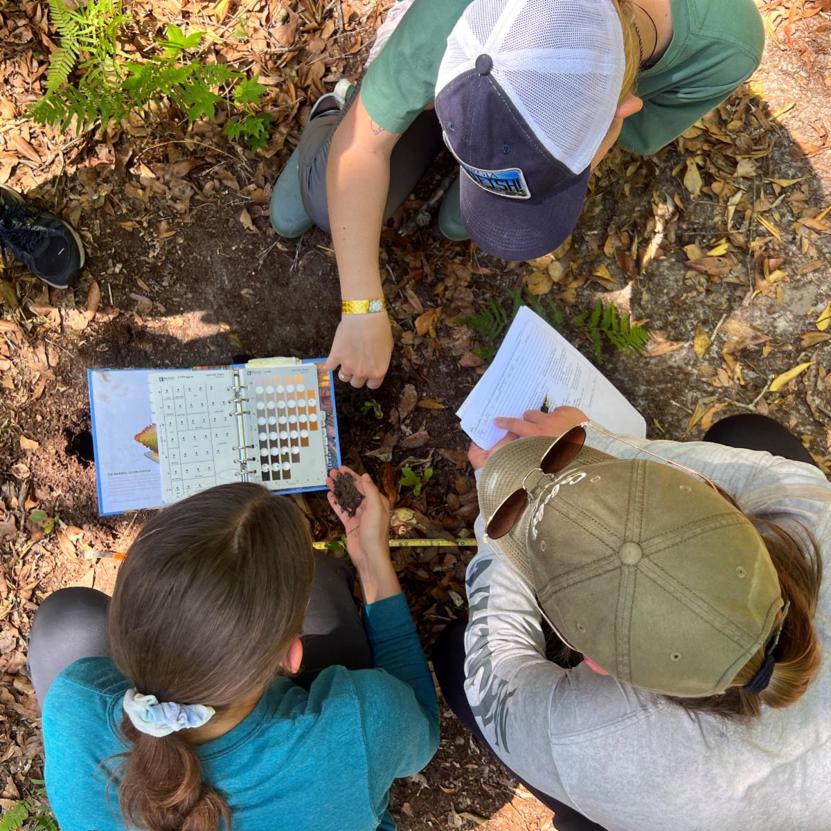 Dr. Tarsa, a professor from the College of Coastal Georgia, joined staff from the Land Trust and from Georgia Water & Environmental Services (GWES) to lead students in a wetland delineation field lab at Guale Preserve. Students surveyed a site at the Preserve for three types of indicators that are used to delineate wetlands - soil profile, hydrology, and vegetation. Students took soil samples, ran transects, and surveyed plants in the area. This was the first opportunity these students had to combine and apply firsthand all the skills they learned throughout the semester.