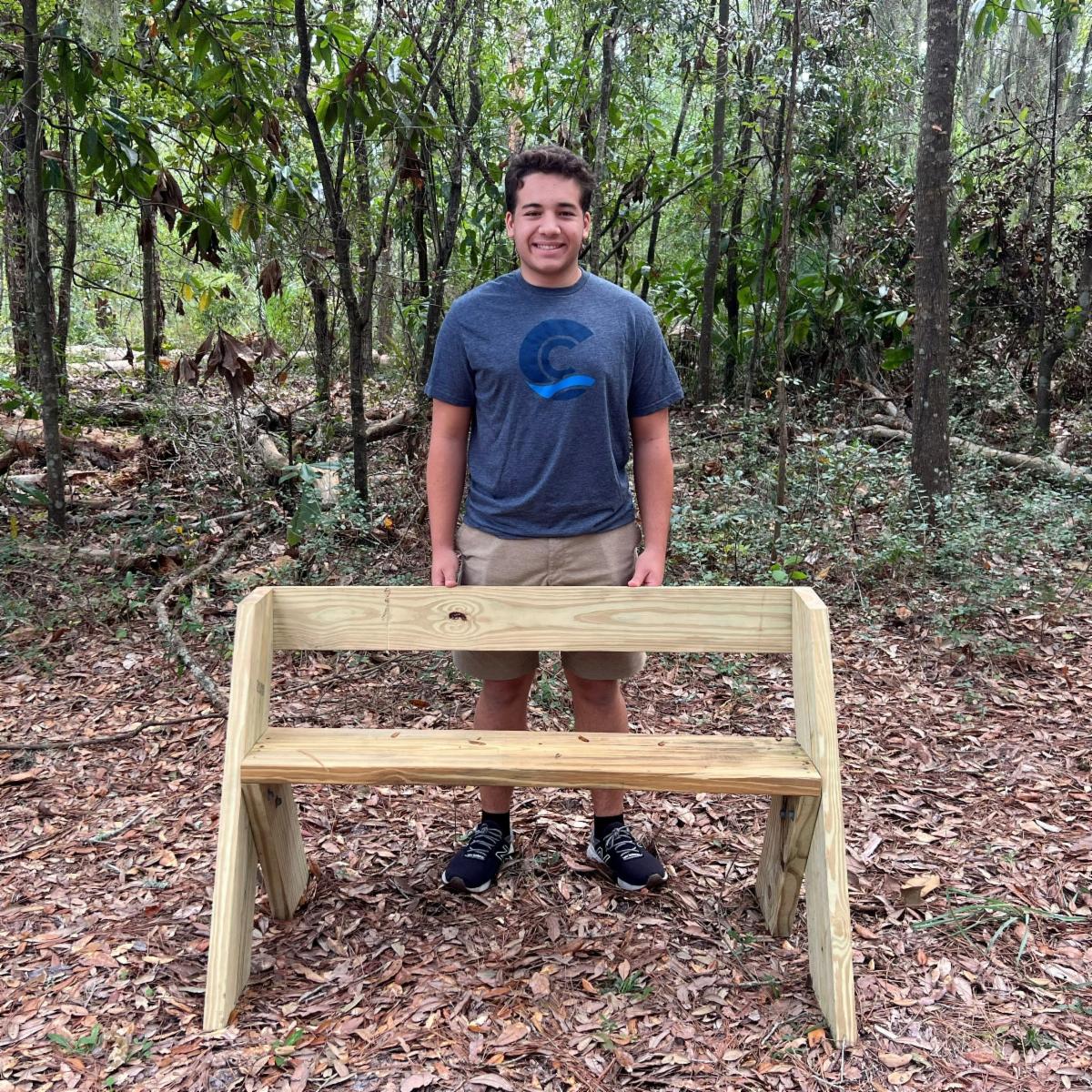 Vince Forgione (left) and Finn Hanlon (right), from Troop 248 on St. Simons Island, have both utilized Land Trust properties to help complete final requirements to receive their Eagle Scout ranking. Both young men built and installed Leopold benches, with the help of fellow troop members, along highly trafficked Land Trust trails. Vince's benches can be found along John Gilbert Nature Trail and Finn's benches can be found along the newly cut Ancient Dune Trail at Guale Preserve.