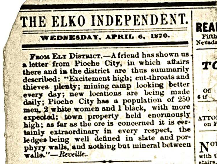 The town had began with a small population of 250 residents, but when the news of huge silver deposits spread, Pioche soon swelled to about 10,000 souls. Many undesirables—claim jumpers, card sharps, and soiled doves—flooded the area. Their main forte was to separate miners from their money.