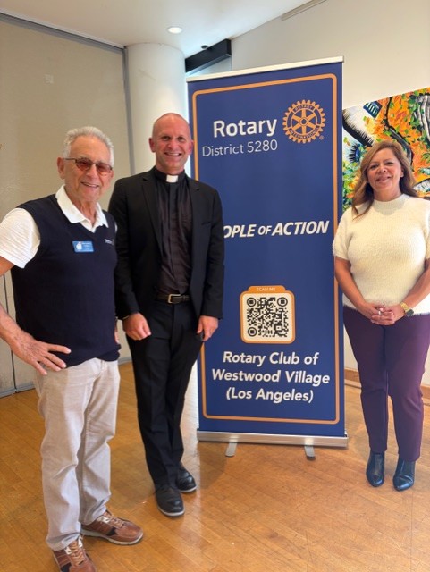 John O’Keefe (in trademark bow tie) introduced our guest speaker, Father Travis Harris, President of Verbum Dei Jesuit High School in Watts.