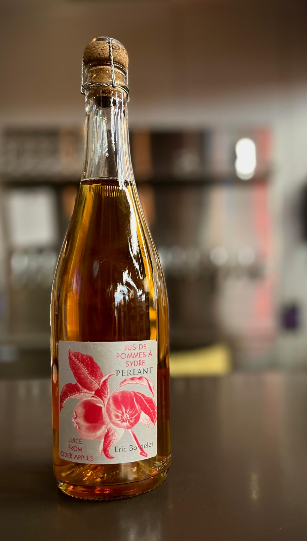 "Non-alcoholic sparkling apple juice made from a blend of varieties and is just lightly sparkling like all Eric Bordelet ciders. Fruity, sweet, slightly spicy taste with a clear character of red apples, hints of straw, honey, cinnamon and orange."
