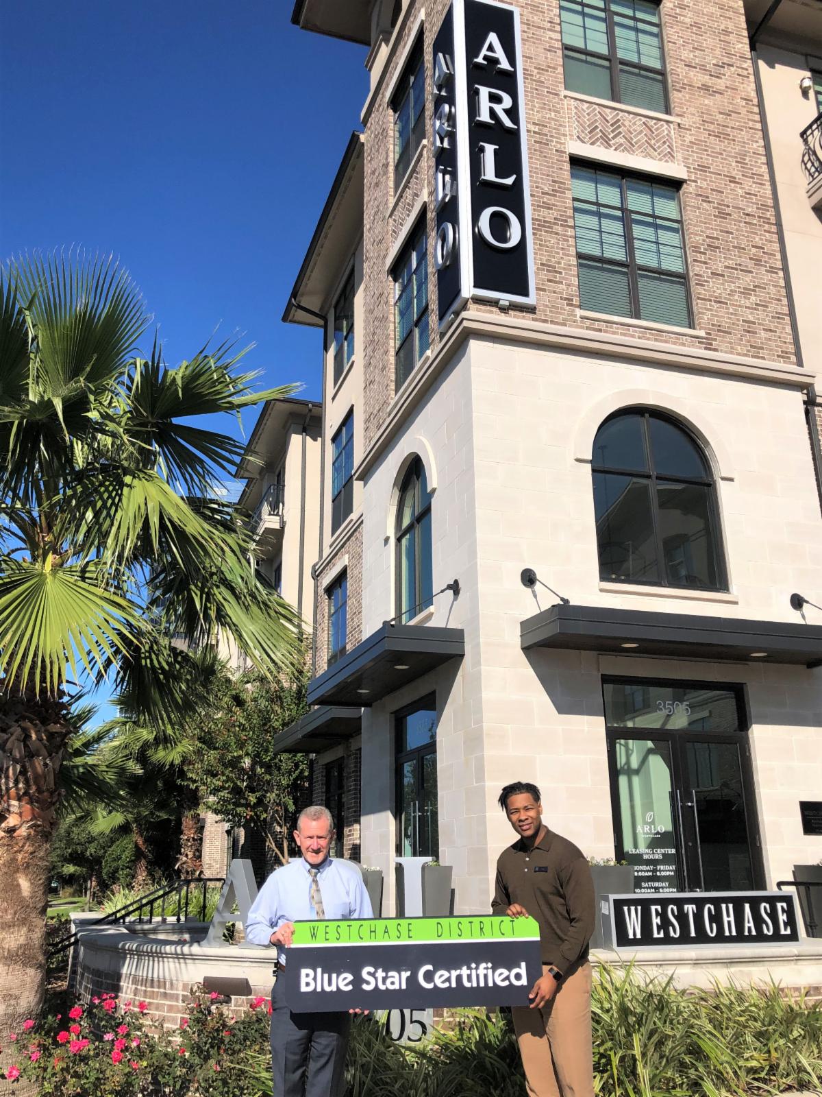Arlo Westchase at 3505 W Sam Houston Pkwy South is the latest Westchase District apartment community to be awarded the Blue Star certification.