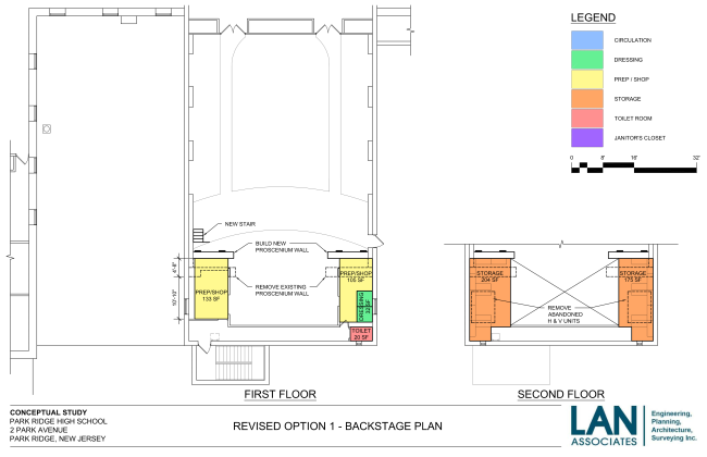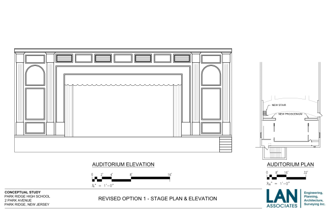 The BOE is moving forward with a plan to renovate the HS theater proscenium and backstage area. The project includes new drapery, lights and audio system. In early 2026, the project will be bid, with the hope that construction will begin on July 1st. Please check back here each month for updates. Please see the design schematics below: