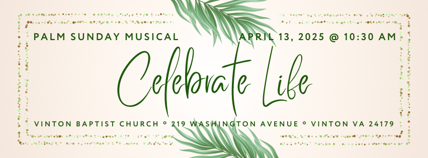 The RVBA Spring Associational Meeting is Tuesday, April 29th at 6:30 PM at Bonsack Baptist Church, and we need several volunteers who are able to attend and who would represent Vinton Baptist as messengers. If you are available, please contact Patsy Talbert in the church office at 540-343-7685. Thank you!