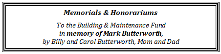 Thank you to the Fellowship/Berean Sunday School class for their donation to the Maintenance & Improvement fund.