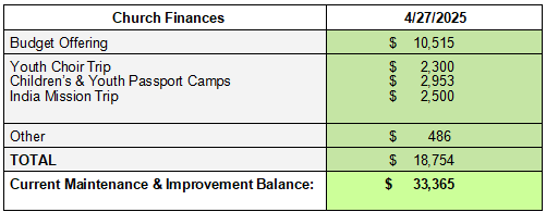 | | Thank you to the Dorcas Sunday School class for their donation to the Youth Choir Mission Trip. | | |