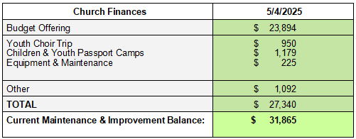 Thank you to the Fellowship/Berean Sunday School class for their donation to the General Fund.