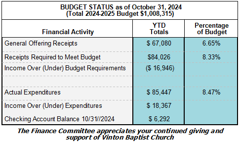 We have special guests with us this Sunday: Bill & Penny Ross. Bill is a former pastor of Vinton Baptist Church, who served from 1988 until 2000. During morning worship, he will join Chris and Travis for a panel discussion about our history of missions in India, current initiatives, and opportunities for the future. Please join us for worship at 10:30 AM (Sunday School at 9:15 AM). If you can't join us in person, livestream is available through our app, at www.vintonbaptistchurch.org, and through our Facebook page.