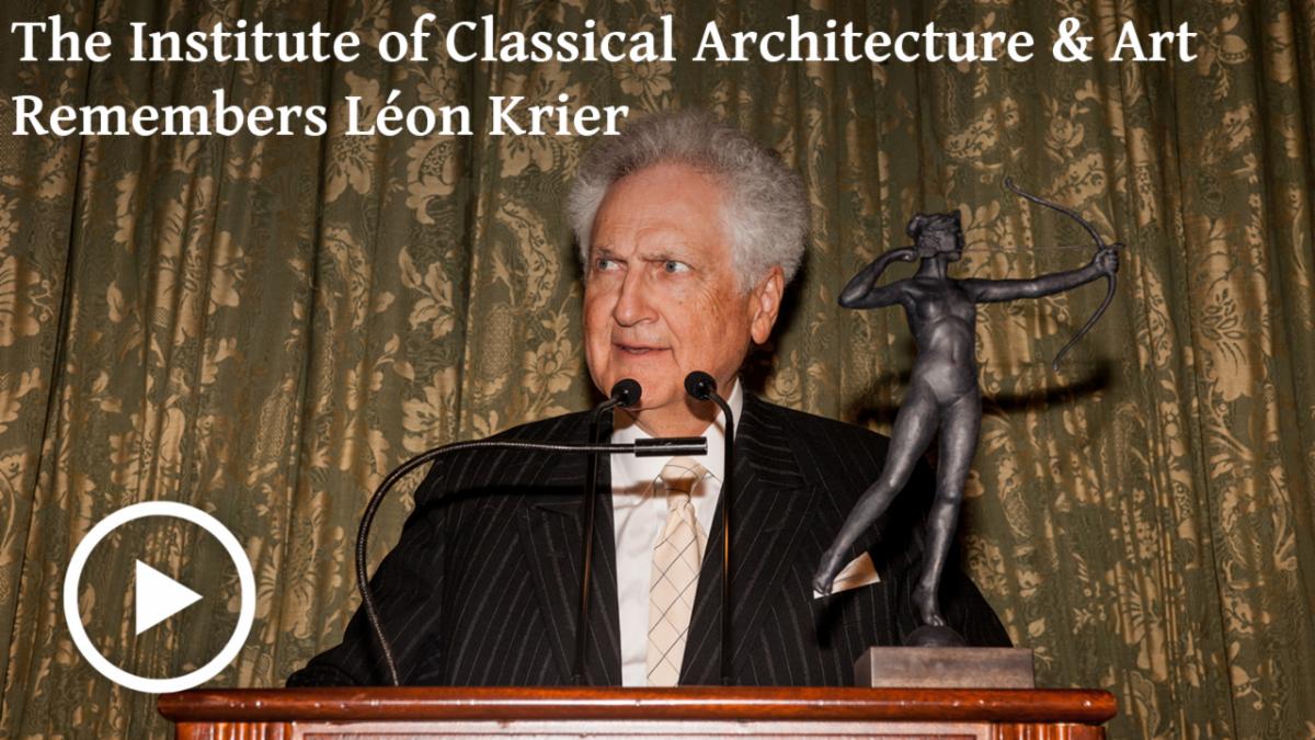 At the Institute of Classical Architecture & Art (ICAA), we are saddened by the news of the sudden passing of Léon Krier, an extraordinary architect, urban planner, and theorist whose work expressed his conviction that the language of classical and traditional architecture and design held the answers to creating towns, cities, and communities that were enduring, sustainable, and beautiful. The ICAA was honored to recognize his extraordinary career achievements, bestowing on him the Arthur Ross Award in 2015. In 2003, he was the first laureate of the Richard H. Driehaus Prize in Architecture, awarded by the University of Notre Dame School of Architecture.