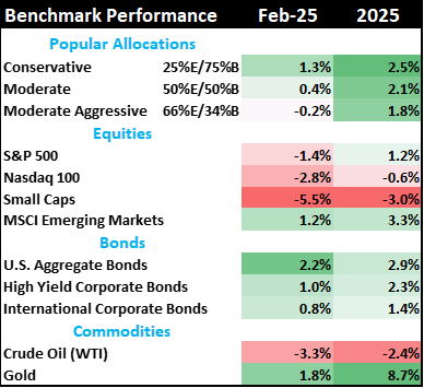 - Bond markets rose during February. While Congress has not committed any effort to cutting spending, Elon Musk's exposure of waste, fraud and abuse has some hoping that actual spending might fall without Congressional action.