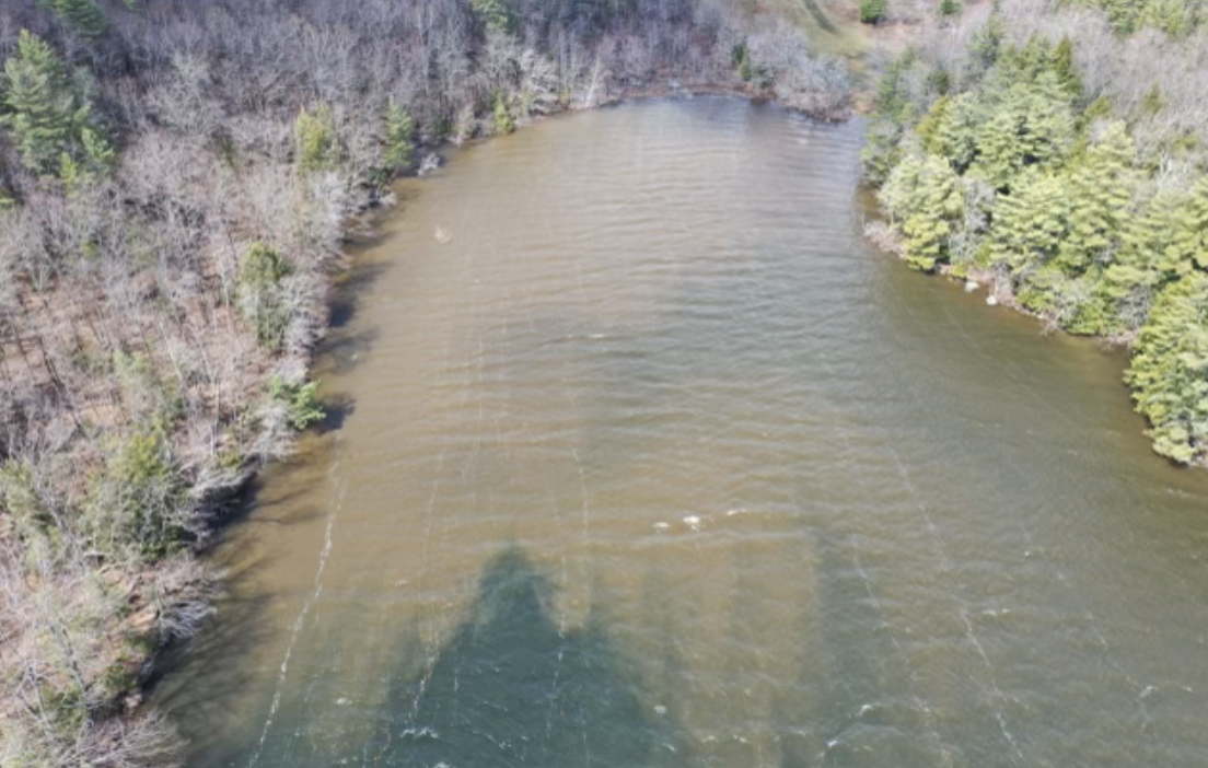 Photos: Top and middle: Road washouts in Vienna, May 1st. Bottom: A plume of polluted runoff in Parker Pond on May 1st, taken by Josh Robbins.