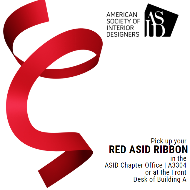 Be sure to pick up your ASID RED RIBBON in the ASID Chapter Office | A3304 or at the front desk of Building A.