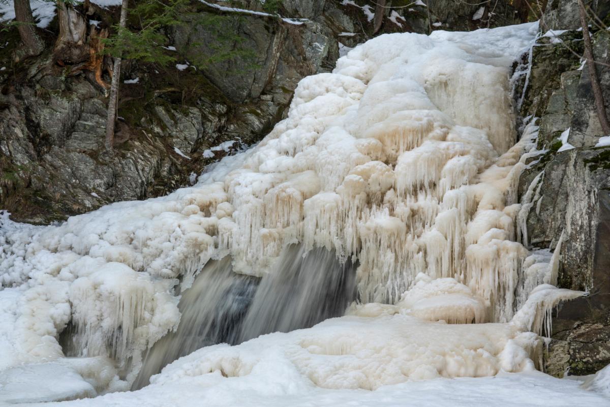 The 20-foot falls are roaring – please use caution and don't walk on frozen waters. The trailhead is located on Cascade Road in Saco, roughly a quarter-mile south of Route 1.