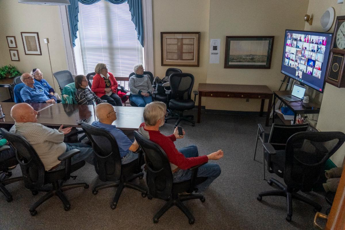 Age Friendly Saco volunteers gathered in the first floor conference room at City Hall last week so they could be together to accept the award via Zoom. Led by Director Jean Saunders, the volunteer organization has a diverse and growing set of initiatives aimed to achieve their mission of making it easier to age in place.