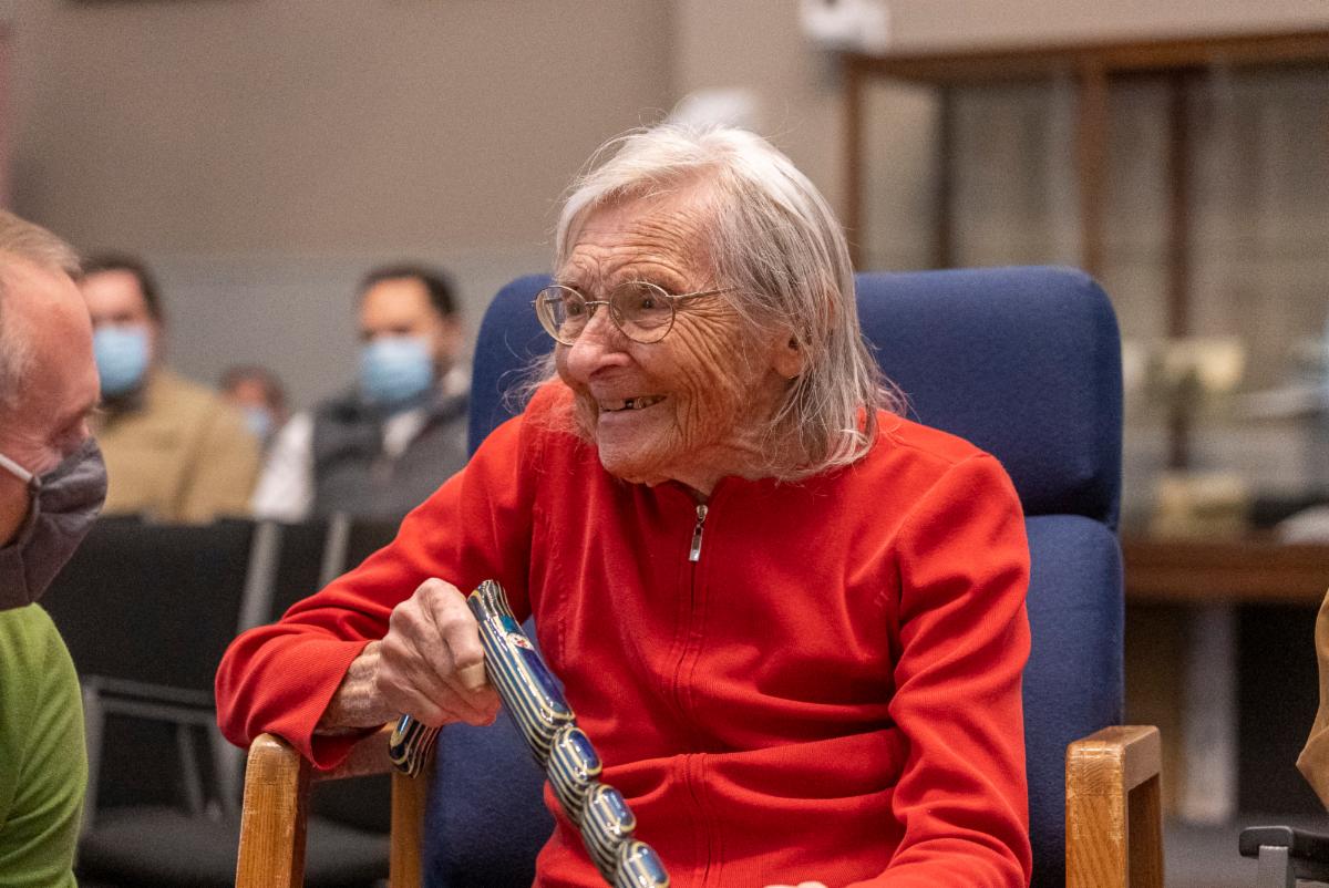 Saco has a long tradition of gifting locally-made walking canes to our oldest community members. Ernie Merritt, a Saco resident, makes these custom canes for centenarians, and presented one to Wanda last night.