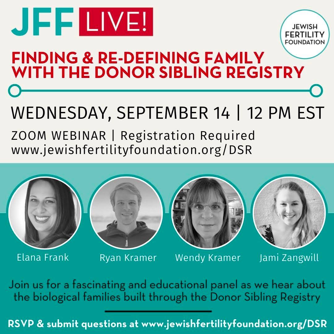 September 2022: Finding and Redefining Family on the Donor Sibling Registry. Featuring Wendy Kramer, Ryan Kramer, and one of Ryan's (23) half siblings, Jami Zangwill.