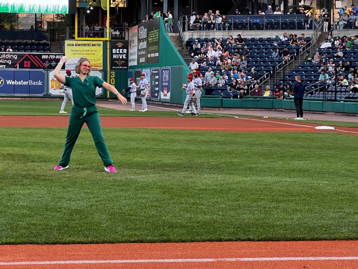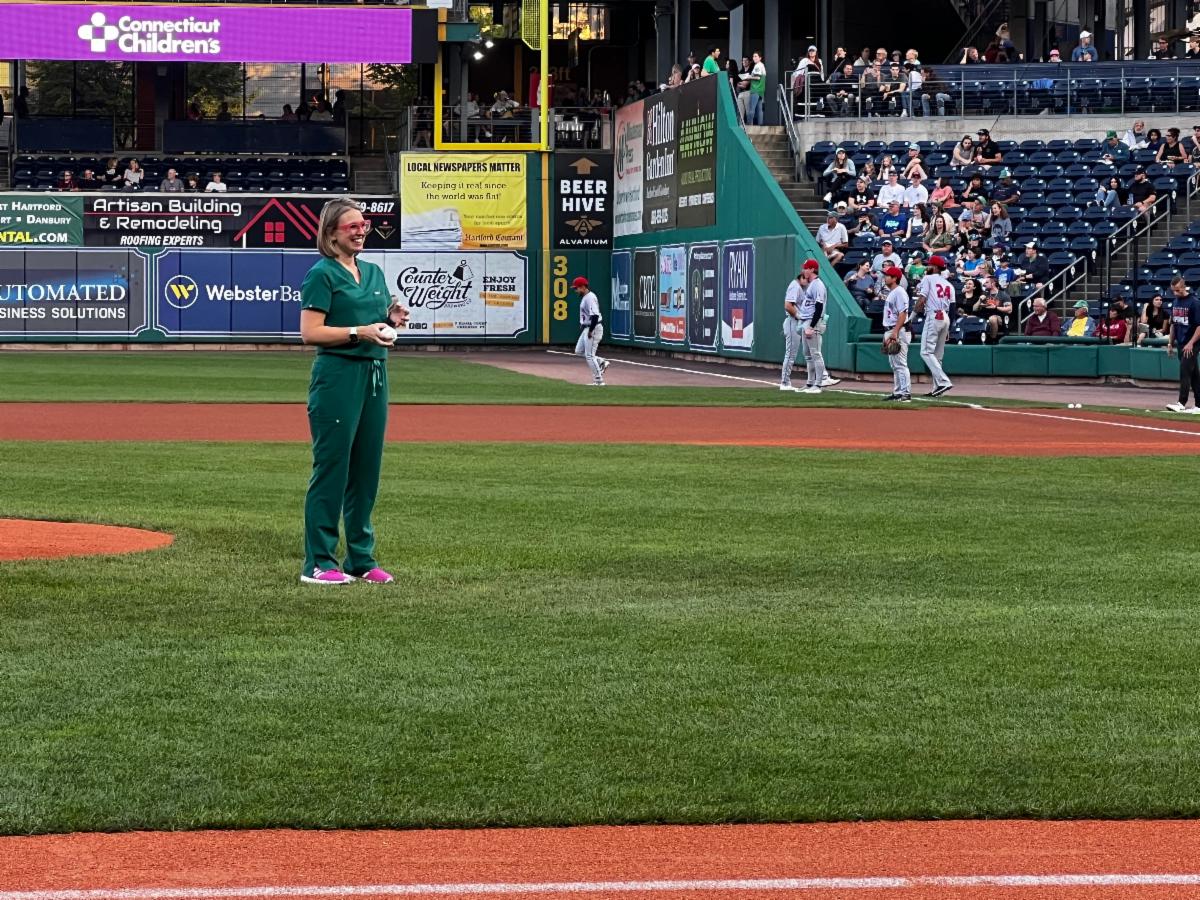 Erin Clark DNP FNP-BC APRN '06 '17 was presented with the 'Good Catch of the Year' Award presented by the Safety Coach Committee at the 10th Annual Illuminations: Quality, Patient Safety and Transformation Conference in June 2024 through Connecticut Children's Medical Center. Erin Clark was recognized for her determination, persistence, and questioning attitude for a patient determining a rare 1 in a million diagnosis thus finding answers that helped save this child's life. With this award, she was invited to throw out the first pitch at a Hartford Yard Goats game. Amazing work, Erin! | |