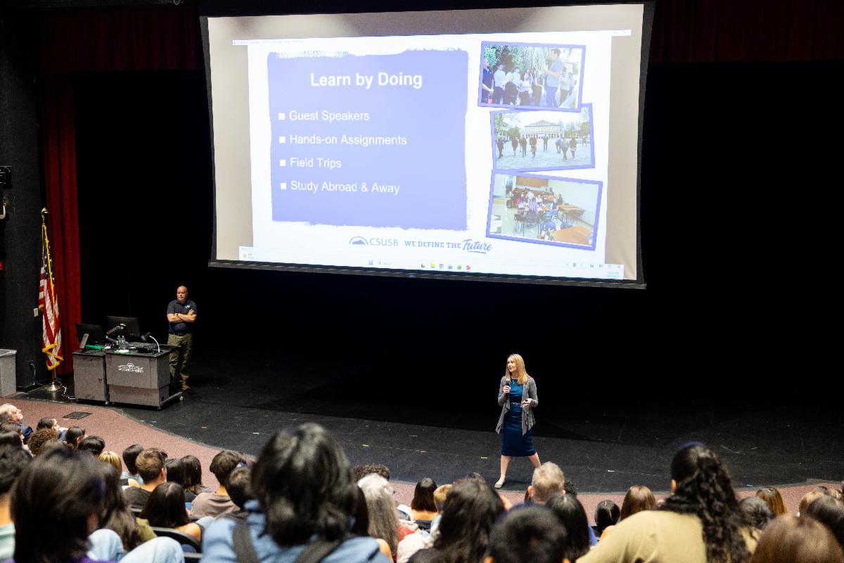 Local high school juniors and seniors filled the Indian Wells Theater on campus to learn more about the many programs the Jack H. Brown College of Business and Public Administration at CSUSB has to offer, including, but not limited to, hospitality management, marketing, accounting and finance, and cybersecurity. Attendees also had the opportunity to tour the campus and meet with faculty and industry professionals.