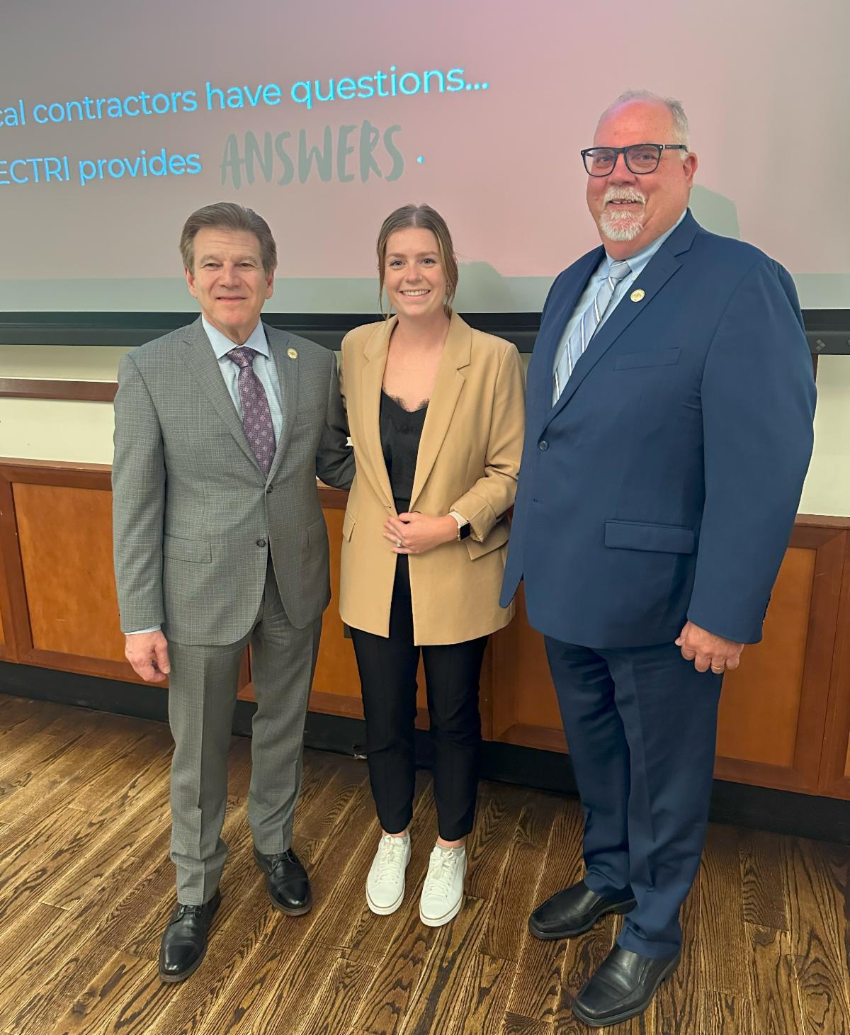 May 14, 2025 | | The Electrical Contractors’ Association of City of Chicago (ECA) held is May Regular Membership Meeting on Wednesday, May 14, 2025 at Gibsons Steakhouse in Oak Brook, IL. The luncheon event featured industry updates and a guest presentation from Anna (Trapane) Jochim, Director of Future Workforce Development, ELECTRI International. | | Chapter Member Legislative Activity | | The Electrical Contractors’ Association of City of Chicago ECA) / Chicago & Cook County Chapter, NECA would like to thank Kendra Dinkins, ECA Vice President, Taylor Electric Company (leftside of photo), for meeting with Congresswoman Robin Kelly, Illinois 2nd Congressional District (rightside of photo) on Monday, May 12, 2025. Ms. Dinkins was able to dovetail a meeting with Congresswoman Kelly following a City Club of Chicago meeting at Maggiano’s Banquets in downtown Chicago where the Congresswoman was the featured presenter. Topics carried over from the recent NECA Legislative Conference were discussed. These issues aimed at optimizing the business climate for electrical contractors included: Supporting a Reconciliation Package, Securing Prosperity Through Tax Reform, Greenlighting Growth with Permitting Reform, and Investing in Our Nation’s Infrastructure. Thank you, Kendra! Also, the ECA Legislative Committee encourages members to reach out to their elected officials and discuss small business concerns / issues vital to the electrical contracting industry. Let the ECA know if you need assistance coordinating a session or you wish to report on a meeting you’ve had. | |